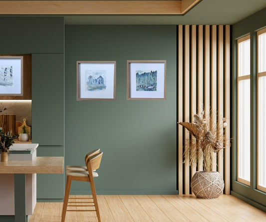 Framed art - the cabins on the beach - original art framed