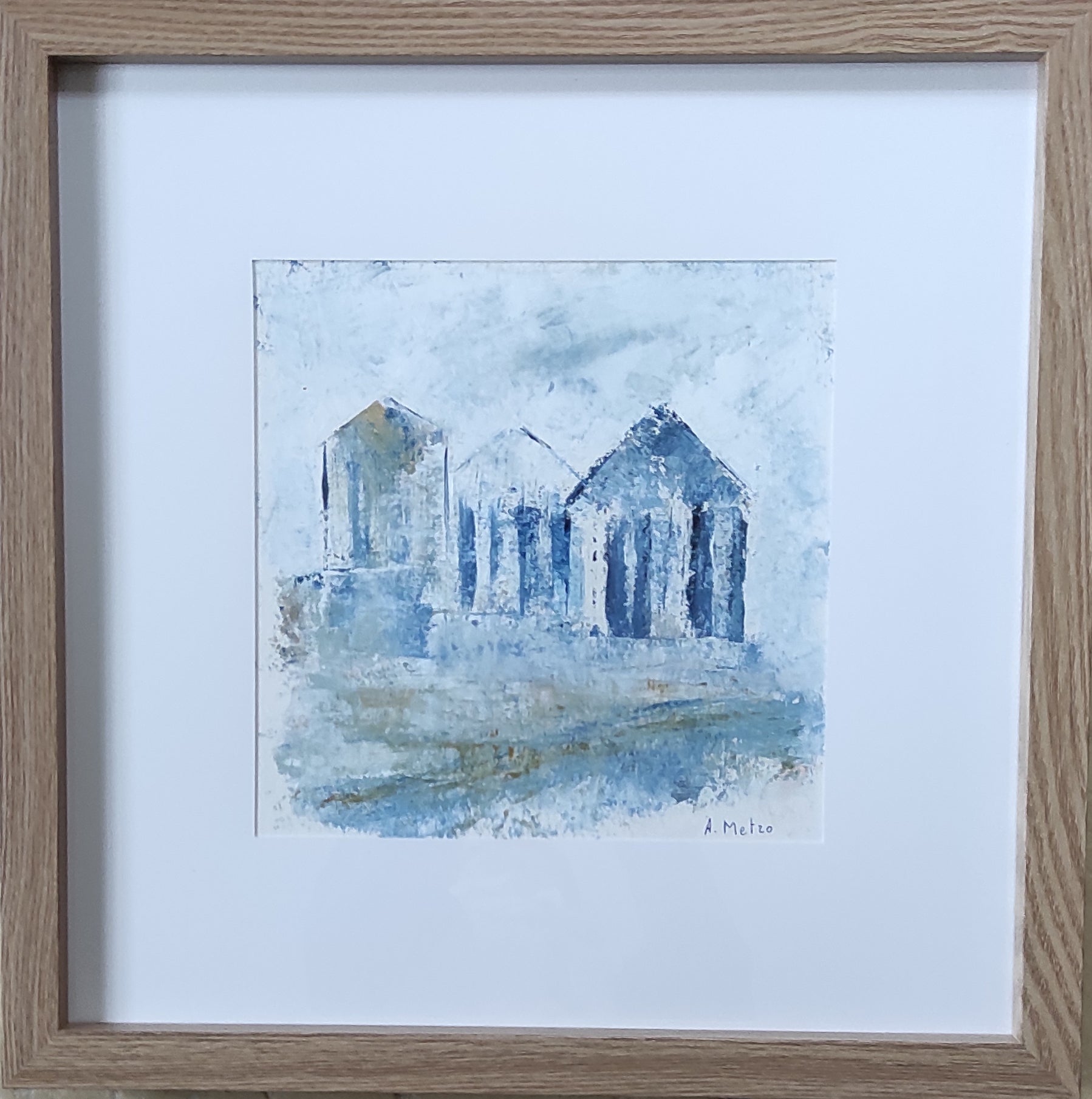 Framed art - the cabins on the beach - original art framed